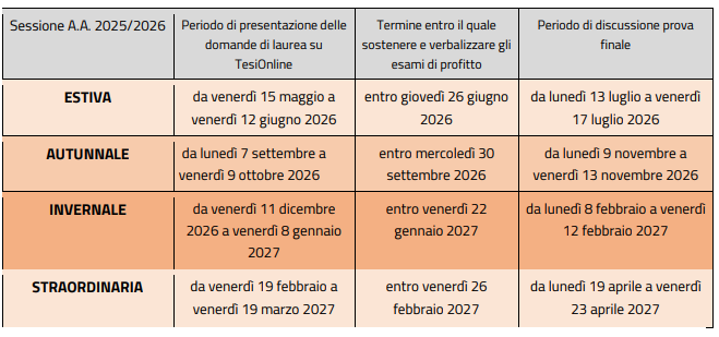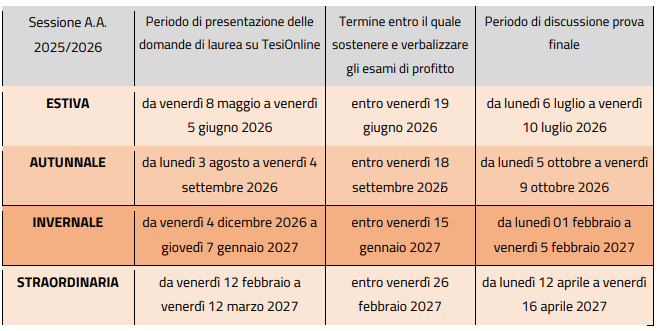 | Scienze e Tecniche Psicologiche | 1/10/2025-23/12/2025 | 2/03/2026- 5/06/2026 |